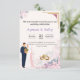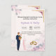 Fira din speciella dag med denna eleganta muslimska bröllopsinbjudan, med en stilren illustrerad brud och brudgumme, mjuka pastellfärgade blommor och guldbröllopsringar för en meningsfull touch. Den rena layouten, varma toner och raffinerade design gör denna inbjudan perfekt för moderna islamiska bröllop eller multikulturella firanden.