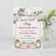 Denna eleganta inbjudan har en vit bakgrund infattad med en delikat gyllene geometrisk ram. Överst ger akvarell-inspirerade vita rosor, eukalyptusgrönska och mjuka rosa penseldrag en modern romantisk touch. Nederst pryds den av pastellrosa rosor och frodig lövverk, kompletterat med två lysande lyktor som ger värme och charm. Perfekt för bröllop, brud shower, förlovningar, årsdagar eller någon speciell tillställning.