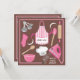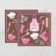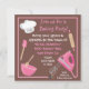 Blanda lite roligt bakande med denna super söta rosa och bruna inbjudan. Ljus rosa mixer eller blandare med den elektriska sladdramen och ljus rosa köksredskap. Söt kockhatt, randig förkläde, kavl, ugnshandskar och måttskedar fullständigt gör denna inbjudan. Handritad illustration av McBooboo