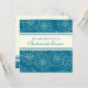 Minnesmiddagsbjudningar i elegantens turkosa blå och kräm blommigt, elegant och feminin, anpassade med duschdetaljer. Finns också i tackkort och inbjudningar till brudens sida.
