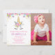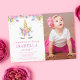 Söta enhörniga födelsedagsfester fotoinbjudningar. Den här söta designen har vattenfärgsfärgad rosa, lila och blåa blommor, ansikte och faux glitter konetti. PROVFOTOT INGÅS INTE. ERSÄTT MED DIN EGEN FOTO FÖRE ORDNING.