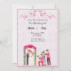 Fira din stora dag i stil med det här vackert designade bröllopsinbjudan. En romantisk brud och groom som står under en blommigt som dekoreras med rosa hjärtformade ballonger, medan fotografer fångar det speciella ögonblicket. Den mjuka rosa-mönstrade bakgrunden och elegantens typografi gör denna inbjudan till perfekt för både modernt och klassiskt bröllop. Ett unikt sätt att inbjudan era kära till i er lycka.