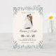 Fira din speciella dag med detta vackert designade bröllopskort som innehåller en romantisk illustration av en brud och en groom omgiven av ömtåliga botaniska accenter. Perfekt för par som vill ha en tidslängd och elegant för inbjudan till sina nära och kära i bröllop.