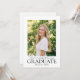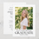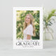 En klassisk inbjudan till examensceremoni med ett eget foto och traditionell typografi. Denna eleganta design presenterar en formell, minimalistisk layout och en tidlös känsla för stil. Du kan anpassa mallen med examenfotot, namn, föräldrarnas namn, examensinstitution, utbildningsinstitution, examensår och ceremonidetaljer. Tryckfärger: svart och vitt, eller anpassa färgen för att matcha ditt universitet, skola eller college. Tillgänglig som tryckt kort eller digital nedladdning.