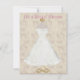 Elegant inbjudningskort för möhippan som göras i en mjuk blom- bakgrund för beige och för rosor, med diagram av en vitbröllopkappa på ett guld- stativ. Skräddarsy alla textområden på baksidaen och bekläda av detta underbara kort för att passa dina behov. Ändra stilsortsstil, storleksanpassa, och färger för, om du önskar.