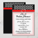 Roligt Inbjudningskort för möhippan med rött bälte och svart med vitt polka dots.