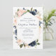 Den moderna marinblått och rosa inbjudningskort för möhippa! Dessa inbjudningar kommer att bli perfekt för en modern möhippa i eleganten! De här inbjudningarna har vattenfärger som målats upp i marin och blommigt med accenter från guld.