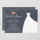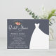 Bröllop eller Inbjudningskort för möhippan, med elegant blommigt bouquet och en vacker bröllop på en marin blå bakgrund med rosa korallblommor.