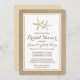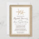 Denna enkla strandbröllopinbjudningskort för möhippan presenterar en lantlig burlaplookbakgrund som gränsas i din bröllopfärg. Brännpunkten av inbjudan är en para av den eleganta sjöstjärnan. Anpassningsbarfärger som är tillgängliga på förfrågan.