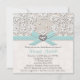 Vintagesnöre och fin burlap för linne ser brud- inbjudningar med en damastast bakgrund för subtil antik Victorian och en utskrivaven aquamintstrumpebandsorden och pilbåge, en utskrivaven diamant- och rhinestonehjärta och en pärlemorfärg design. Denna möhippainbjudan kan personifieras med händelsenamn på baksidaen av denna elegant och ladylike inbjudan. Skapat och designat vid Chrissy H. Studio, LLC. All reserverad rättigheter.