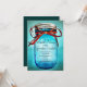 Här är en unik inbjudningskort för möhippan för en landbrud. Dessa presenterar en lantlig masonburk i tonade aquablått med en blåttbakgrund. Masonburken har en bränd orange rödaktig pilbåge som binds runt om den. Dessa är perfekta för brudar som ska har ett landstilbröllop.