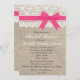 Denna beställnings- inbjudningskort för möhippan är den perfekta kombinationen av traditionellt och moderiktigt. Burlap-looken bakgrunden är perfekt för ett lantligt, eller tillfogar themed bröllop för vintage och denlook brytningen en klassiker, romantiskt handlag. E-post mig för beställnings- färger! NOTERA - detta är ett högkvalitativt avbildar av burlap, snöre & band; denna inbjudan innehåller inte faktisk burlap, snöre eller bandet. Tack!