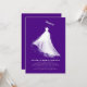 Dessa inbjudningskort för möhippa är en sann firande av brudens känslor och romantik i hennes kommande bröllop. Formens elegans är i sin enkelhet och visar upp en fantastisk silhuett av bruden i hennes andande bröllop-grav. Detta visuella inslag konjugerar en romantisk och vismisk ambians, som väcker känslor om kärlek och nostalgiskt minne. Konstbilden, som markeras med fet stil, sammanfogas oklanderligt till en djup lila, vilket berikar formgivningens allure. Denna okomplicerade men otrevliga strategi ger på ett vackert sätt uttryck för bridrets radians och bröllopens charm och ser till att inbjudningarna lämnar ett bestående tecken på detta minnesvärda tillfälle.