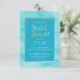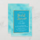 Denna elegant och moderna petite inbjudningskort för möhippan har en handmålad blå vattenfärgsbakgrund, som påminner om havet, stranden eller himmel. Det innehåller också ord "Möhippa" i ett modernt guld-teckensnitt, tillsammans med ett matchande guld ram. Ett vackert och klassligt sätt att ta emot gäster från inbjudan till er speciella händelse före bröllop.