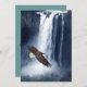 Ett stort amerikanskt Örn får besprutning av ett kaskadande vattenfall som han glider förbi i jakt på belagd lax. Inbjudningskortet är idealiskt för researrangörerna Travel Agent, Eco-Tours, Tourist, Resorts, Campground och Äventyr Tour, till namn några få.