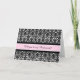 Anpassadet kommer att vara mitt kort för kallelse till brudesmaskin med elegantens rosa, svart och vit, klassisk blommigt, som finns i ett stort antal matchande bröllop-produkter och för resten av brudens sida. Anpassa texten så att du får en verkligt unik briljaninbjudan. Kontakta oss för att begära ett annat färg eller ett anpassningsbar-kort.