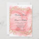 Utformningen har en utskriven färgad med glitter inslag i skuggor av rosa och korall över guld geometriska ram. Underbar för din saga bröllop firande!