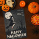 Ange tonen för en skrämmande roligt kväll med det här Halloween fest-inbjudningskortet! Med en snyggt häxa som flyger över det månbelysta himmel med fladdermus, pumpor och begravningsuppgifter fångar det här kortet perfektens blandning av spooky och lekfull. Den djärva Happy halloween-typografin och de redigerbara party-detaljerna gör det enkelt att anpassa för firande. Anpassa med information om händelsens datum, tid, plats och OSA och skicka spännande meddelanden till alla dina gäster. Perfekt för hemsökt party, barnens trick-or-treat-evenemang eller vuxen-kostnadssammankomster.