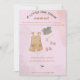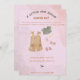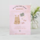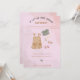 En charmig babyduschinbjudan i mjuka beige och rosa vattenfärgtoner. Utformningen har vackra barnkläder, skor, nappar och en sprit av vete. I texten tillkännages ett firande för föräldrar, med elegant typsnitt och ett varmt, rustiskt stil. Inbjudan innehåller information om datum, tid, plats och OSA.