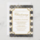 Här är moderna julklingsinbjudningar med glamor! Inbjudningskorten har en vit textinformation om ram och guld färgad vid vattenfärgen stil svart vågrät rand över faux guld glitter polka dots. Du kan anpassa eller ändra informationen efter dina önskemål. Utformningen ser bäst ut med papprare alternativ för rundade hörn i stil.