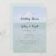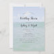 Oceanshorisonts möhippa bjuder in till att fira bruden och brudgummen. Modern typsnitt med djärvt skript för titeln party och hederligt namn, tryckt över blått grönt över vatten och molnet fyllt himmel. Omvänd är solid ljust grönt. Parentesformen är valfri och speciella pappra uppgraderingar erbjuds.