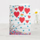 The front design shows a white, plank-style wooden background sprinkled with paper hearts in different sizes and colors. Several large, deep red hearts sit across the upper and middle areas, giving the scene a classic romantic feel ❤️. Smaller blue hearts are scattered between them, and one heart with rainbow stripes stands out as a sweet nod to love that includes everyone 🥰. From the lower left corner, a thin bare branch reaches upward, with a few tiny blue hearts attached like little buds. Along the bottom third, countless mini hearts in pink, yellow, orange, and blue gather like confetti, making the whole layout feel celebratory and close. The greeting text sits near the top in neat, flowing red lettering that’s easy to read against the white wood. It’s a gentle way to share Valentine’s Day sentiments.