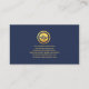 Överst, i ett blått omslag längst upp finns den logotypen i guld, följt av ditt prestigefyllda namn, kontaktuppgifter och ett sloganalternativ för att offentliggöra ditt företag.