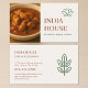 The layout blends luxury and authenticity — deep spice red and soft sage accents on an ivory background create a timeless palette that looks stunning in print. Ideal for restaurant owners, chefs, and catering professionals, this editable template highlights your logo, contact information, and cuisine style beautifully.