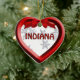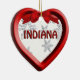 En grafisk design av snöflingor i ett rött ram i 3D stil på en hjärtform Indiana-julprydnad. Ordnamnet har textmallar för din anpassning. ©2012charmainepaulson