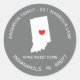 Unikt tillstånd för INDIANA Nytt klistermärke för hemadress på en grått-bakgrund med rött hjärta och flygplan.