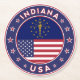 Indianas märke med Indianas flagga och flagga av USA färg, avrundat. Indianas emblem. Indianas försegling. Samling i USA Stater. Indianapolis, Fort Wayne, Evansville, South Bend, Carmel, Fishers, Bloomington, Hammond, Gary, Lafayette