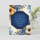 Experience a union of dramatic color and artistic elegance. This design features a stunning composition of deep indigo blue and vibrant marigold yellow blossoms. Lush, painterly peonies and chrysanthemums in rich hues are rendered with exquisite detail against a soft ivory backdrop, creating a sophisticated and memorable atmosphere.