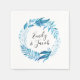 Våra eleganta personliga pappersservetter har en krans med akvarellblad i nyanser av indigo och tealblått. Anpassa de botaniska servetterna genom att lägga till era namn för en design som kommer att imponera på era gäster! Designad för att samordna med vår Indigo Leaves bröllopssamling.
