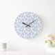 En rund akrylväggsklocka för söt, med typiskt indisk-stil-blommigt i Indigo Blue på en vit bakgrund som du kan ändra om du vill. En del av Posh- och Painterly Indigo-samlingen. Mönster kan lätt ställas in så att det passar alla vägglås.