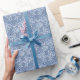 En rulle med söt Wrapping Papper, med typiskt indisk-stil-blommigt i Indigo Blue på tvättat ut Denim Blue, beskriven i vitt. En del av Posh- och Painterly Indigo-samlingen. Denna mönster kan lätt justeras så att den passar vilken roll som helst av gåvspån.