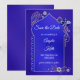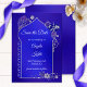 Ett romantiskt Spara datumkort i indiska/pakistanska/marockanska stil med henna och tatuering inspirerade till mönster i silver på en individblått med djup lila bakgrund.