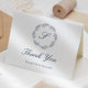 Tack vare det här elegant bröllop-kortet har du en indigo blå foliekrans som omger en inledande skriptmonogram. Orden "Tack" visas i indigo blue script. Lägg till namnen för bruden och skum nedan i indigo.