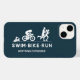 Fet grafik som anpassar de tre triatonhändelserna - SIMMA, BIKE, SPRINGA med sidhuvudena under.