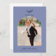 Med det här fototacket i bröllop kan du visa din uppskattning för vänner och familj på perfekten. Den här designen flyter botaniskt löv ovanför en båge ram på en indigobakgrund. Alla formuleringar och typsnitt är anpassade. Baksidan är tom för ett personligt meddelande.