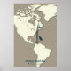 Från Nordamerikas Östra till Bukt Kusten och Väster Indies fullbordas en migration på 4 000 sjömil (6 400 km) av Indigo Bunting (Passerina cyanea). Denna elegant bra konst karta belyser sin säsong resa i ett kollektivt stil.