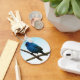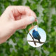Den här nyckelkedjan har den spektakulära hanen Indigo Bunting på gren. Denna lilla fågel ses inte ofta. Han är blyg och tenderar att undvika människor. Hans livsmiljö är jordbruksmark, penselområden och öppna skogsmarker. Han har otroligt briljanta blå fjädrar och en mycket söt sång. Honan är söt men en rörig brun färg.