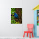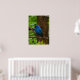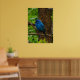 Den här poster innehåller den spektakulära indigo Bunting-mannen som går på en löv i gren-grönten på lush-. Denna lilla fågel ses inte ofta. Han är blyg och tenderar att undvika människor. Hans livsmiljö är jordbruksmark, penselområden och öppna skogsmarker. Han har otroligt briljanta blå fjädrar och en mycket söt sång. Honan är söt men en rörig brun färg.