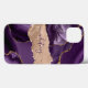 Marble Snyggt Lila Guld Löv iPhone 13 Fodral. Anpassa med namn, monogram, inledande text eller text. Du kan ändra färg och teckensnittet stil genom att anpassa det ytterligare. Observera att effekten glitter och guld inte är verklig, utan bara simuleras.