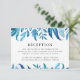 Snyggt och elegant botaniskt bröllopskort innehåller en spray av indigo och tealblått löv designat för att samordna med vår Indigo Lövs bröllop-samling. Anpassa elegantens mottagningskort genom att lägga till din bröllopsmottagningsinformation.