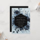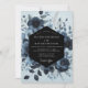 Experience a moody and romantic ambiance with this stunning floral design. Lush indigo, slate blue, and dusty blue watercolor blossoms create a captivating arrangement. The detailed painting showcases large anemones and delicate roses, surrounded by ethereal grey foliage. This dramatic and elegant composition sets a sophisticated tone for your special day.