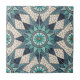 A seamless stained glass mosaic pattern ceramic tile featuring elegant compass star motifs in shades of indigo, teal, turquoise, and sand beige. The intricate geometric layout evokes a sense of direction, calm, and refined craftsmanship, reminiscent of Mediterranean tiles and nautical artistry. This pattern blends sophistication with timeless artistry, making it ideal for modern and vintage-inspired design projects.