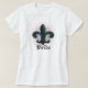 Fira, SOM du och dina deltagare förbereder sig för din speciella dag! Denna brud t'shirt är den perfekta dresset, som du shoppar, tar prov och får redot för din händelse! Den presenterar ett klassikerjärn fleur de lis mot en blekna tapestrybakgrund i mjuk indigoblått och ron som visas här på en vitskjorta! Var säker att kontrollera ut alla koordinerade objekt - meddelanden från "sparan för datera", till inbjudningar,… iphone case, porto och även en koordinerad tie för honom!