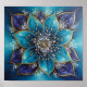 This poster features a vibrant teal and indigo floral mandala painting with layered petals, gold accents and pearl-like dot details-luxury decorative wall art for serene interiors. Finished as a oil acrylic paint print.