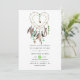 Native american-stambröllopsinbjudan med en drömmares catcher med fjädrar och bländande groddar.