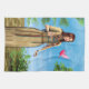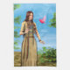 3D digital återgivning av en vacker amerikansk kvinna med en rosa fågel i en grönt skog